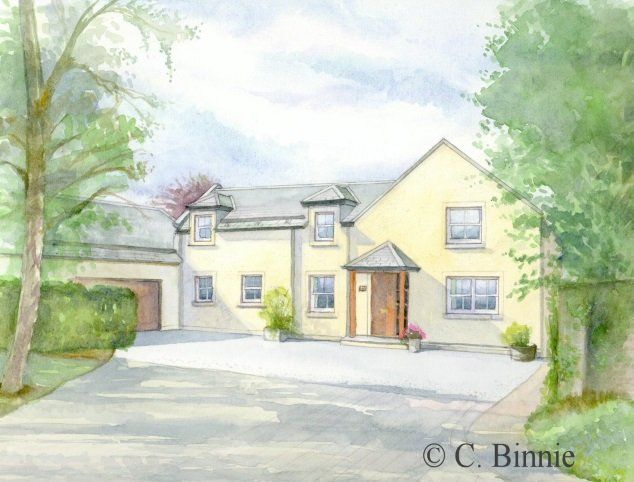 I am kept busy by commission work, doing watercolour house portraits of private homes, churches and hotels – in fact any building which has a special memory or meaning for the client. These are ideal gifts for birthdays, weddings or 1st anniversaries (paper).